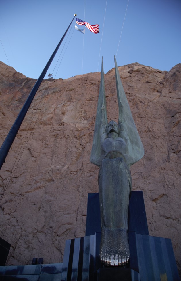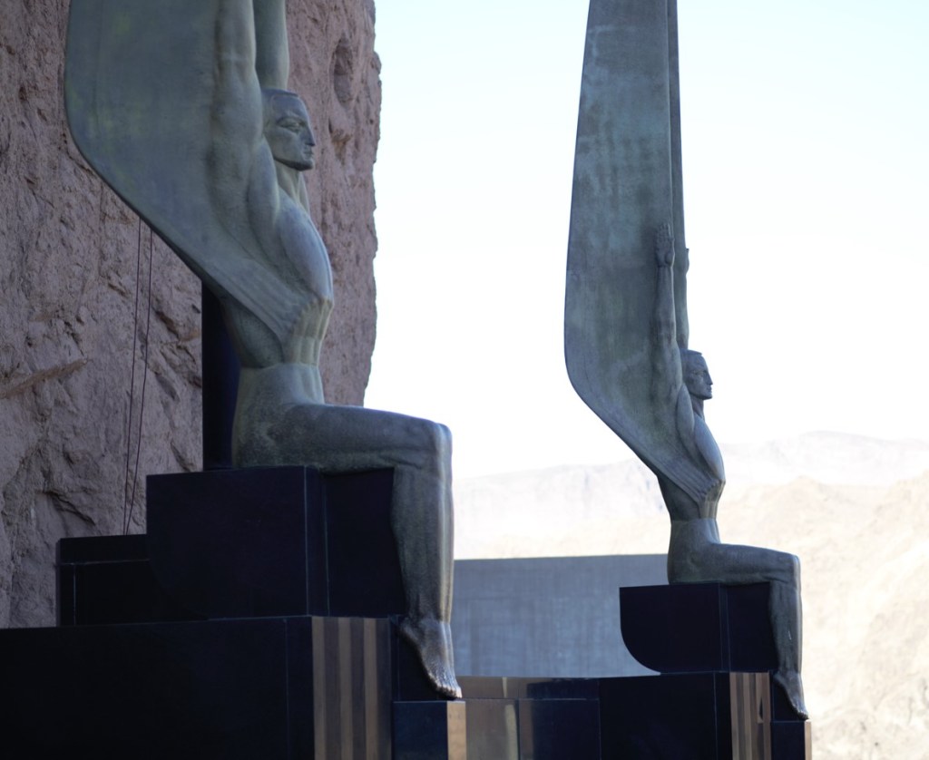 There is also a sculpture of two winged figures. The artwork has deeper meaning but could also be said to commemorate the 96 men (or more) who lost their lives while involved with work on the dam.